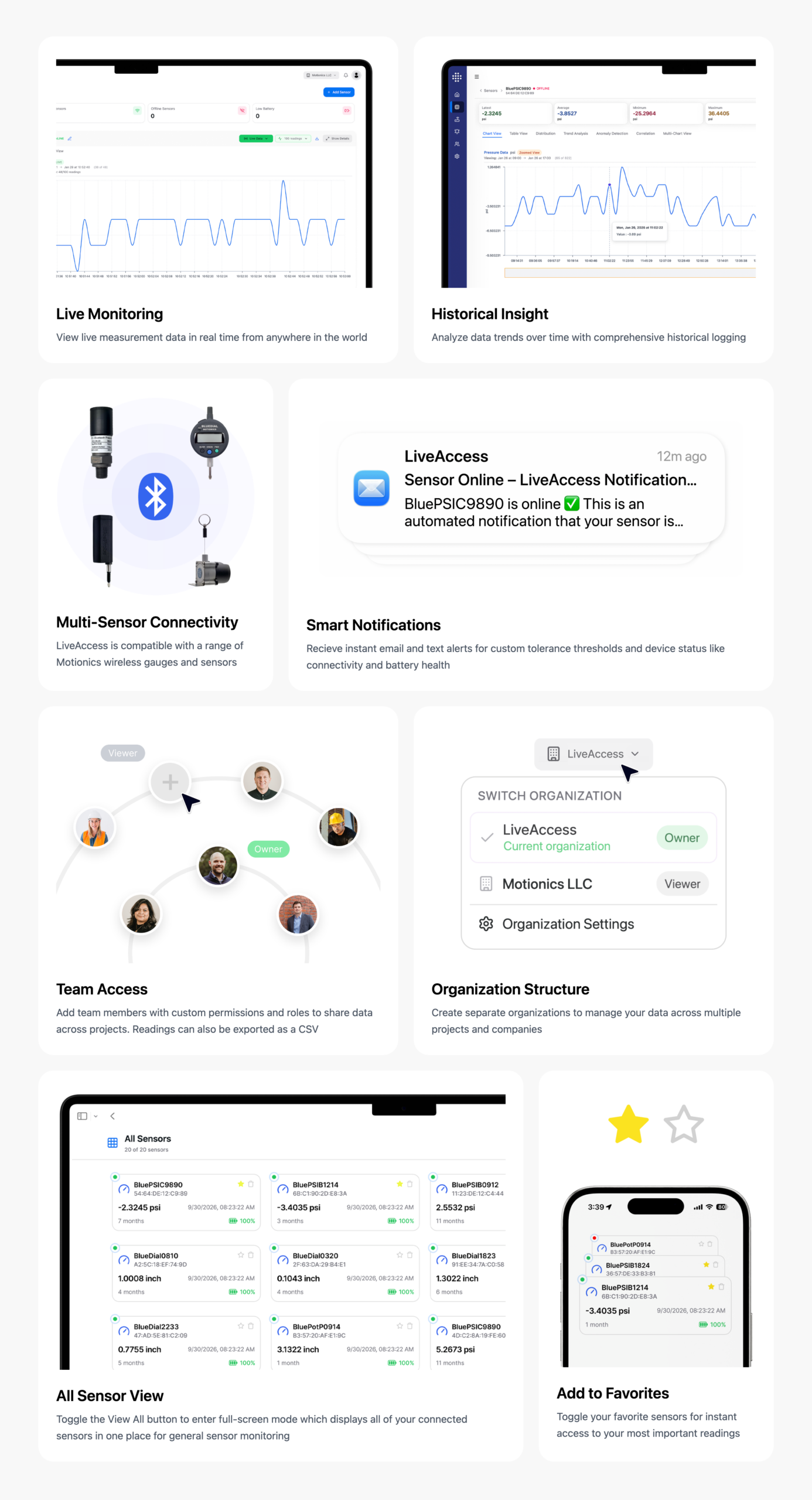 LiveAccess is a secure, cloud-based platform that allows users to remotely view live data from Motionics wireless sensors anytime, anywhere. From construction and mining to industrial testing and long-term monitoring projects, LiveAccess delivers the insight and control that teams need to work faster, safer and with more confidence.